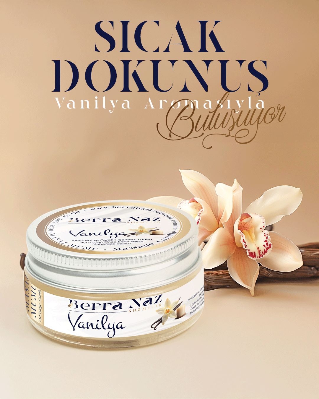 Berra Naz Kozmetik’in Masaj Mumu Vanilya, doğal içerikleriyle cildinizi nemlendirirken, vanilya özlerinin rahatlatıcı etkisiyle masaj sırasında huzur ve sakinlik sunar. Cildinizin pürüzsüz ve yumuşak kalmasını sağlar, masaj sırasında ruhsal olarak da rahatlamanızı sağlayacak etkisiyle size yenilenmiş bir his verir.