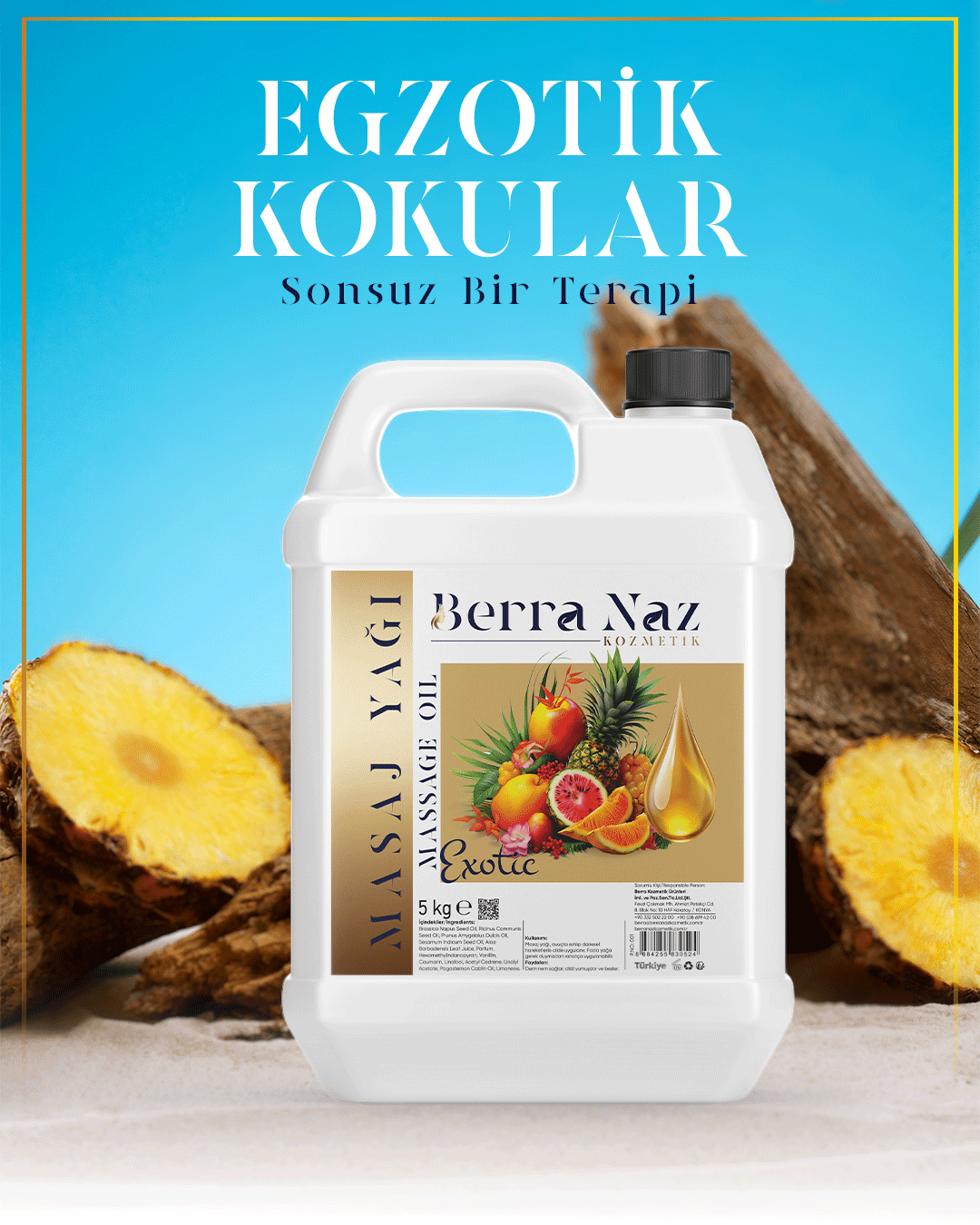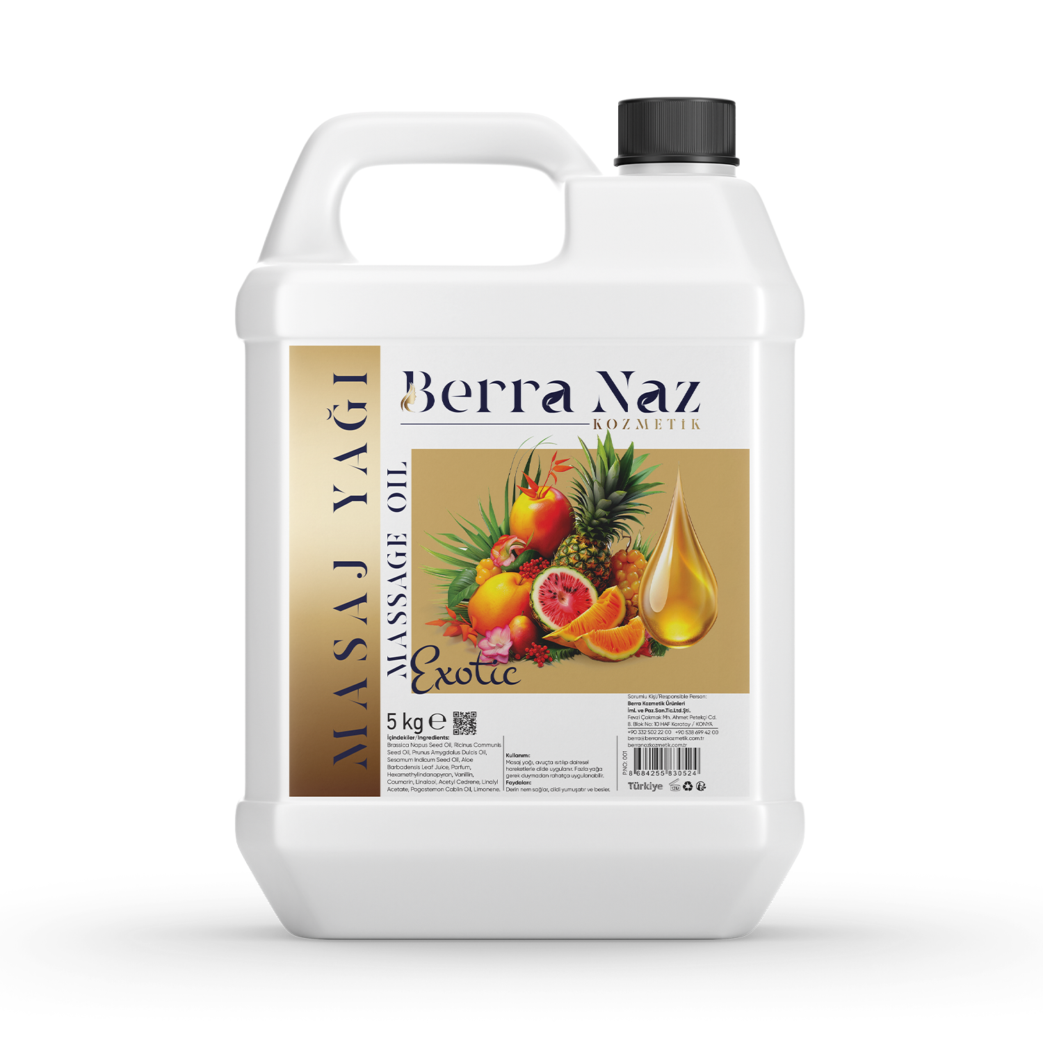 5 kg’lık büyük ambalajı, yüksek müşteri trafiği olan işletmeler için uzun süreli, ekonomik ve hijyenik bir çözüm sunar. Berra Naz Kozmetik Su Bazlı Exotic Masaj Yağı, doğanın egzotik esintilerini profesyonel masaj deneyimiyle birleştirerek bakım uygulamalarınıza fark katar. Konfor, temizlik ve etkiyi bir arada arayan profesyoneller için mükemmel bir tercihtir.
