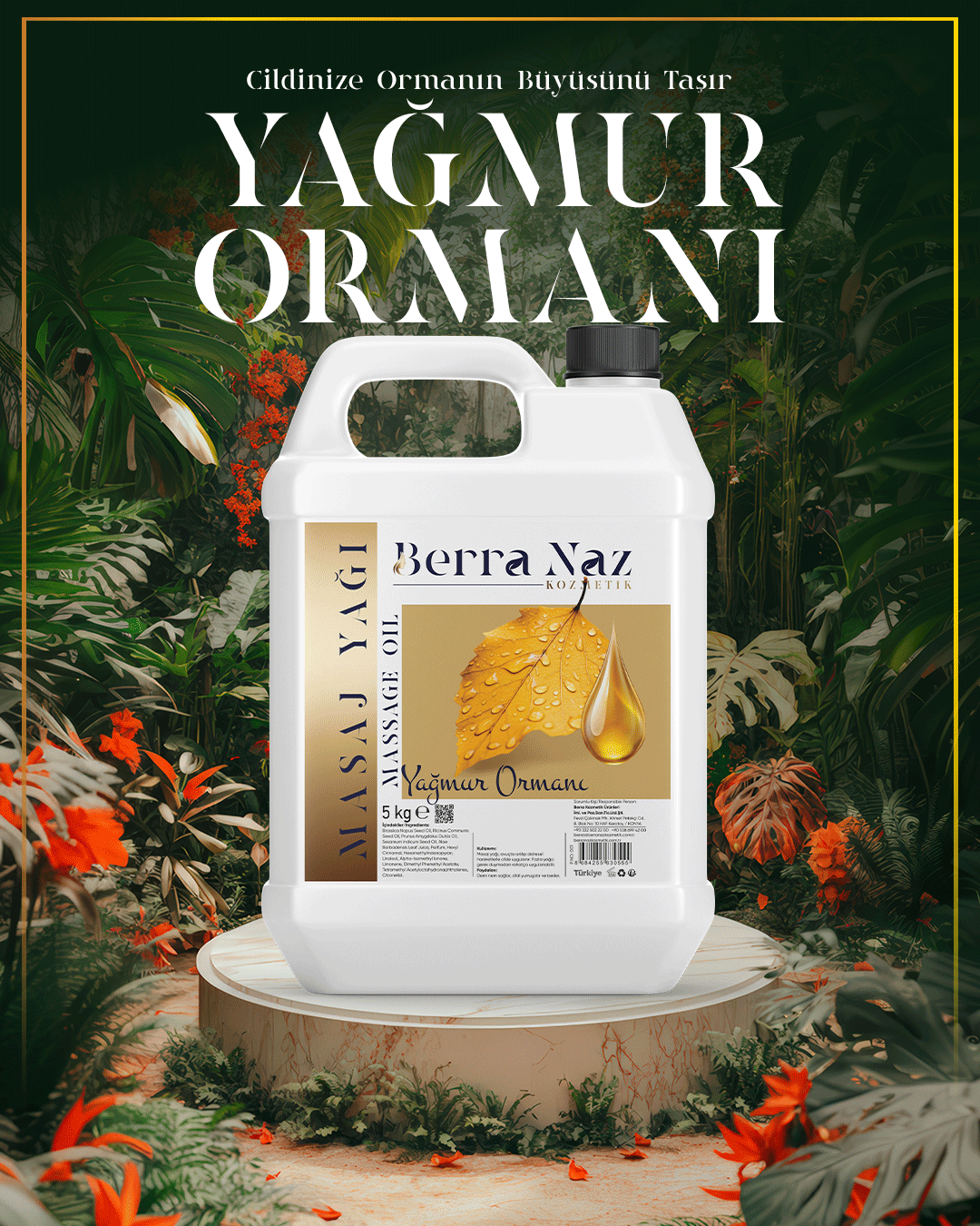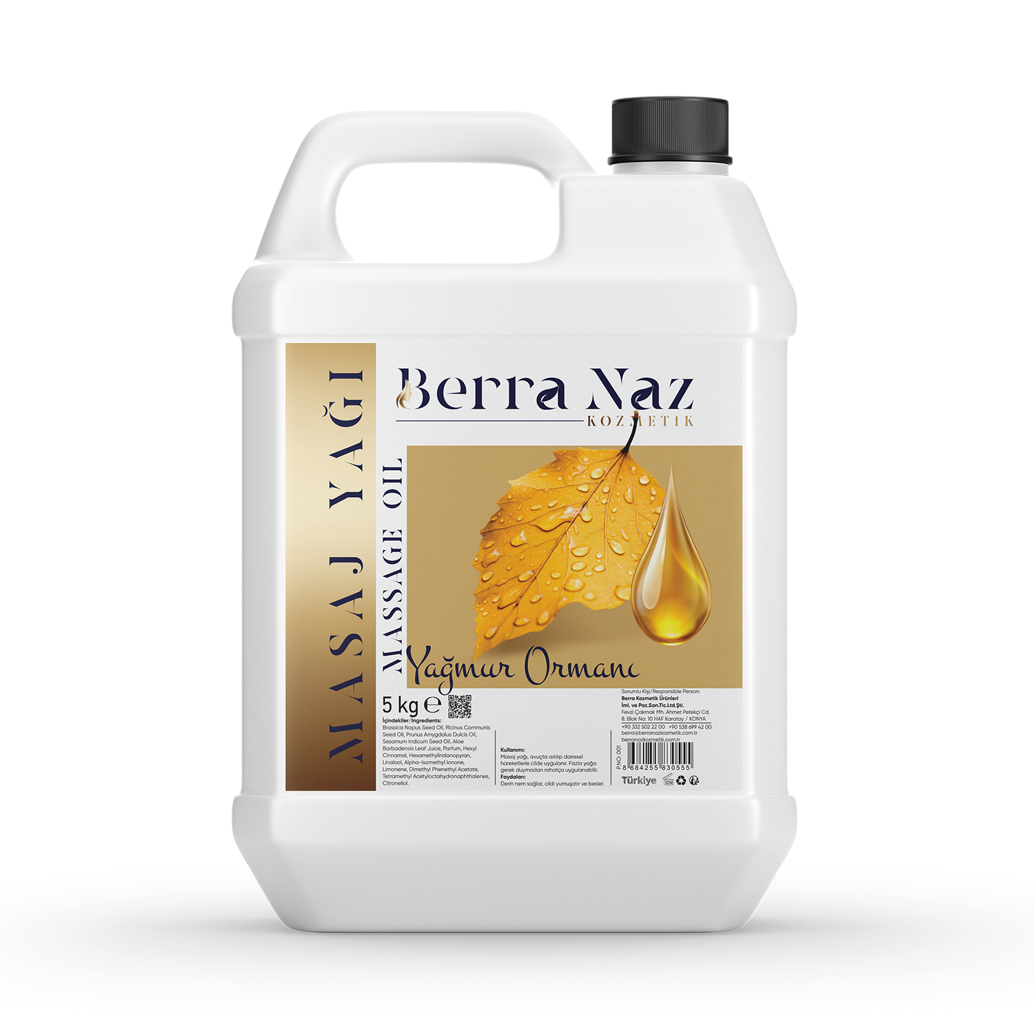Berra Naz Kozmetik Su Bazlı Yağmur Ormanı Masaj Yağı, doğanın ferahlatıcı gücünü profesyonel masaj uygulamalarıyla buluşturur. 5 kg’lık büyük ambalajı sayesinde spa, güzellik salonları ve masaj merkezleri gibi yoğun kullanım alanları için ekonomik ve uzun süreli bir çözüm sunar. Su bazlı formülü sayesinde ciltte hafif bir his bırakır, kolayca yayılır ve uygulama sonrası temizlenmesi son derece pratiktir.